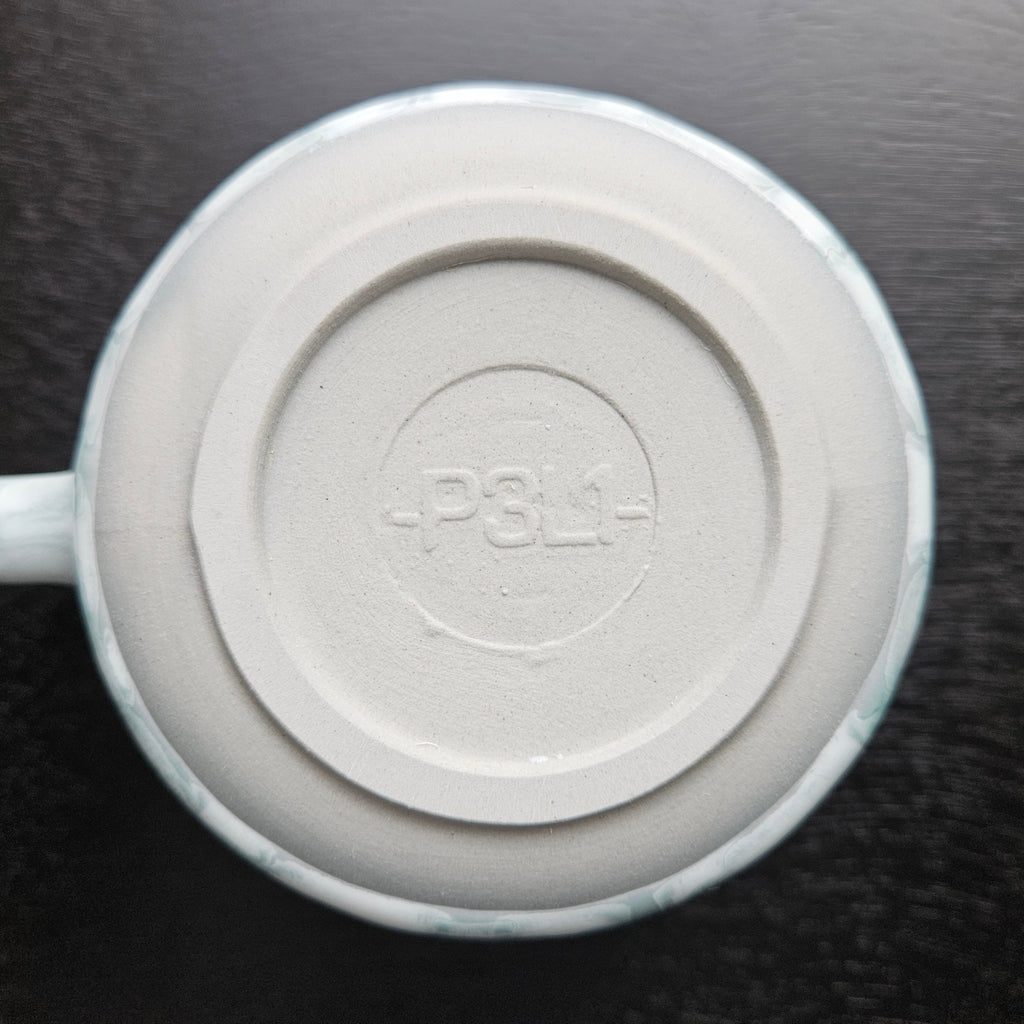 Each mug is unique in dots, dust, and glaze design.